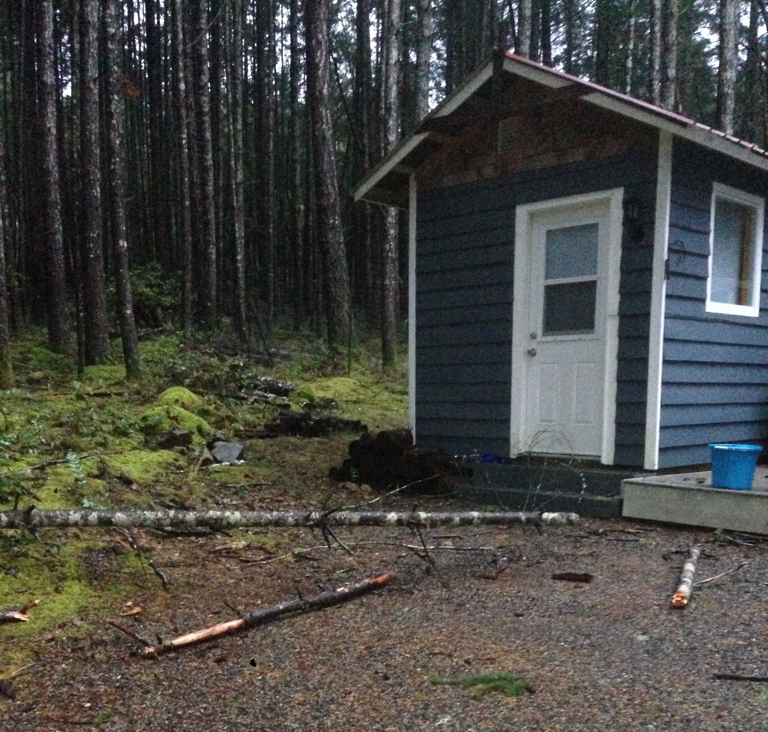 Speaking of trees, we haven’t had any personal bad luck yet but there was one near miss. We left the house to go to the village store a few weeks ago and when I came back an hour later I found this in the spot I had my truck parked.