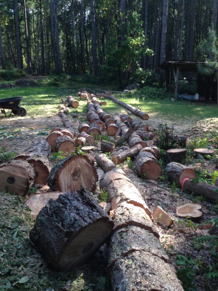 Although we didn’t expect to cut down any more trees until September the boys had some sudden spare time and stopped by today. We had them remove a few additional trees to allow more light into the garden.