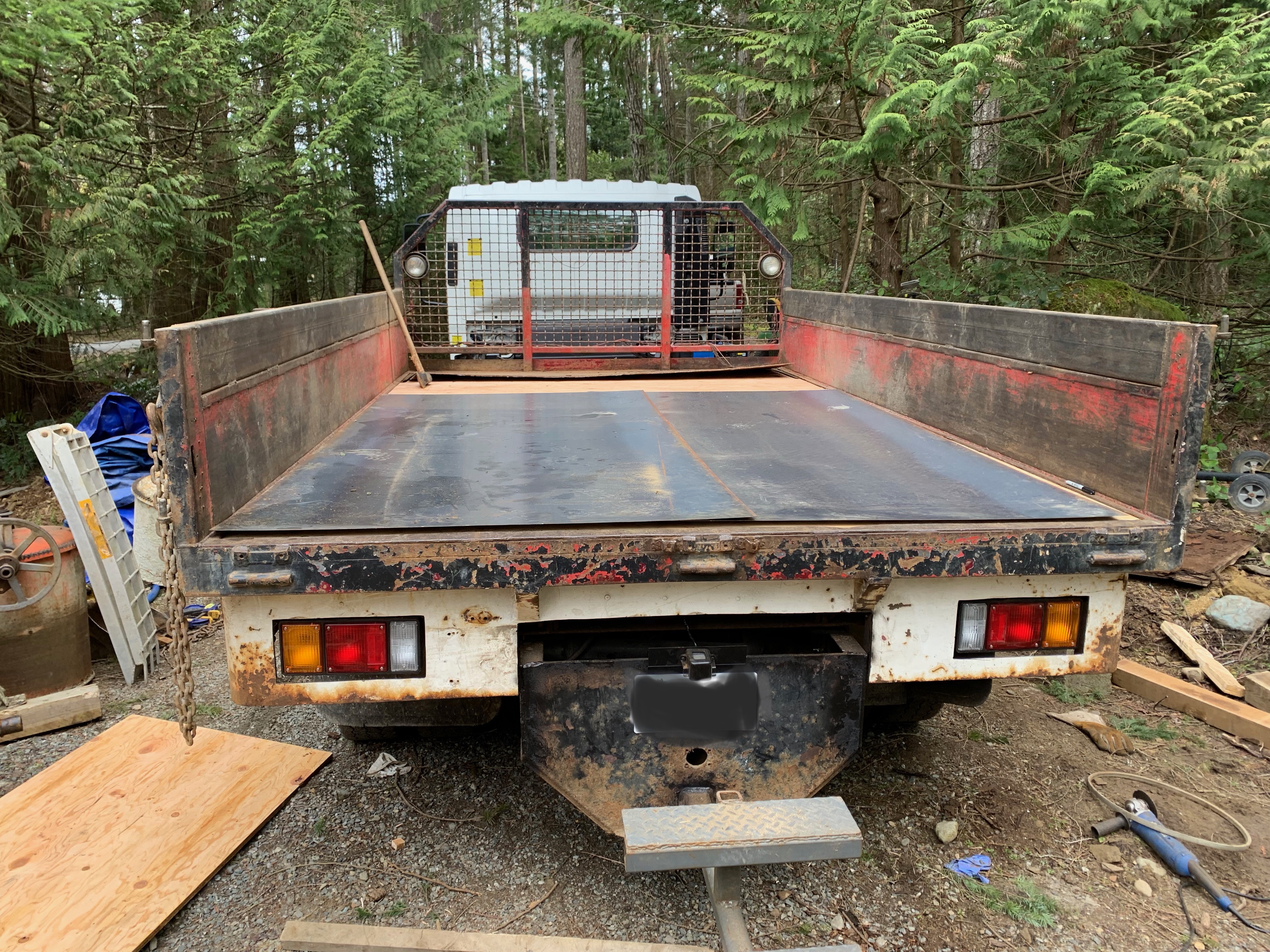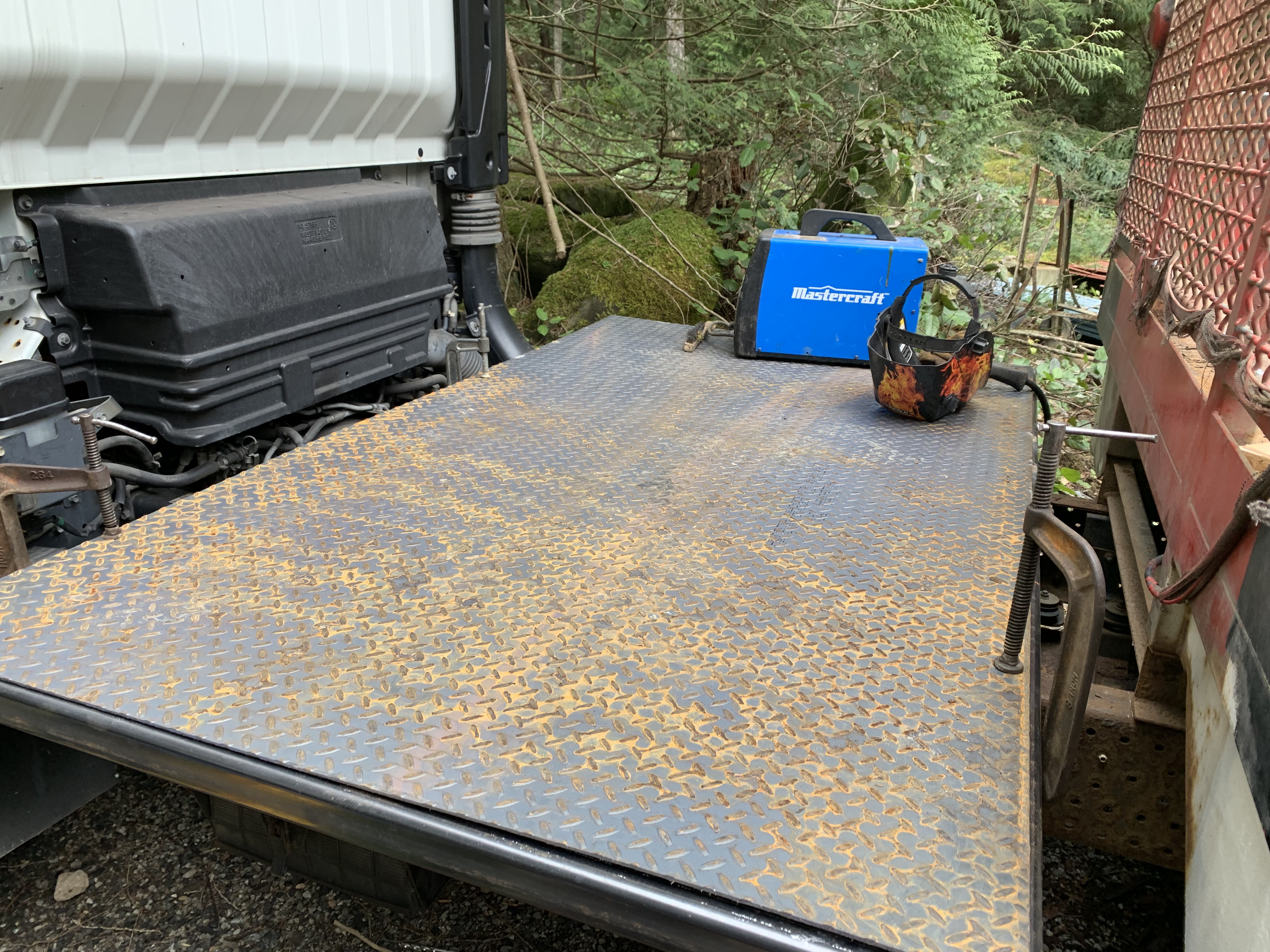 A buddy of mine just got a new”-ish” truck for his business and wanted to do some mods to it. First he wanted to swap his dump box from the old truck to the new one and refurbish the box. Over the years of dropping rocks into the box the floor was pretty much trashed.