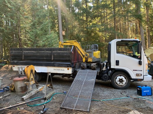 Second, since the new truck is a cab over design the bed frame is quite a bit longer. He decided to use the extra frame to add a toolbox/mini excavator deck.