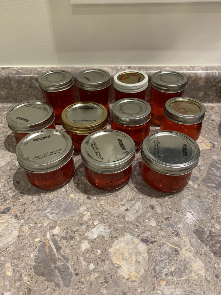 We had not had a crab apple tree in thirteen years when we moved here and really missed making jelly. We were able to get some periodically from people we knew but once we moved we needed a new source.