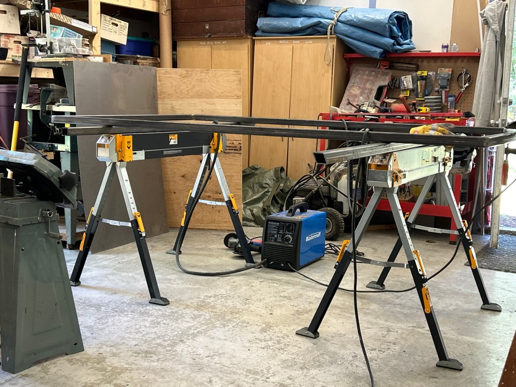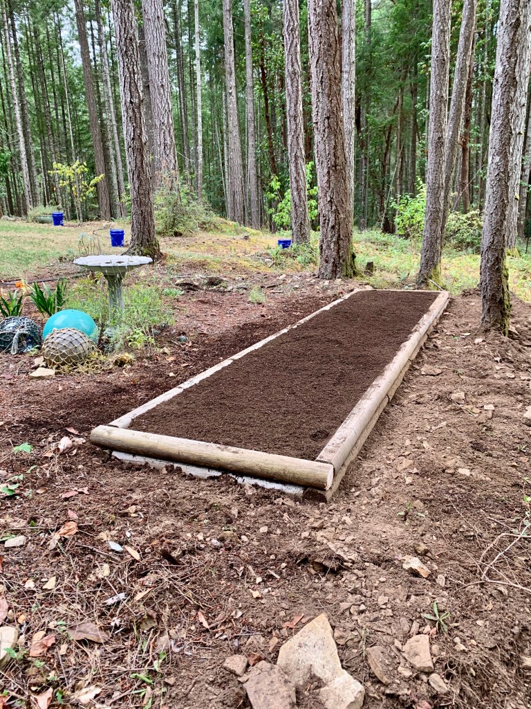 Since the summer garden is still in the ground I decided to build a new bed for this. Closer to the house and lower to the ground. COVID has driven prices up on many materials, wood and soil bing two significantly impacted items.